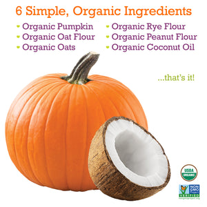 Organic Pumpkin, Organic Oat Flour, Organic Oats, Organic Rye Flour, Organic Peanut Flour, Organic Coconut Oil