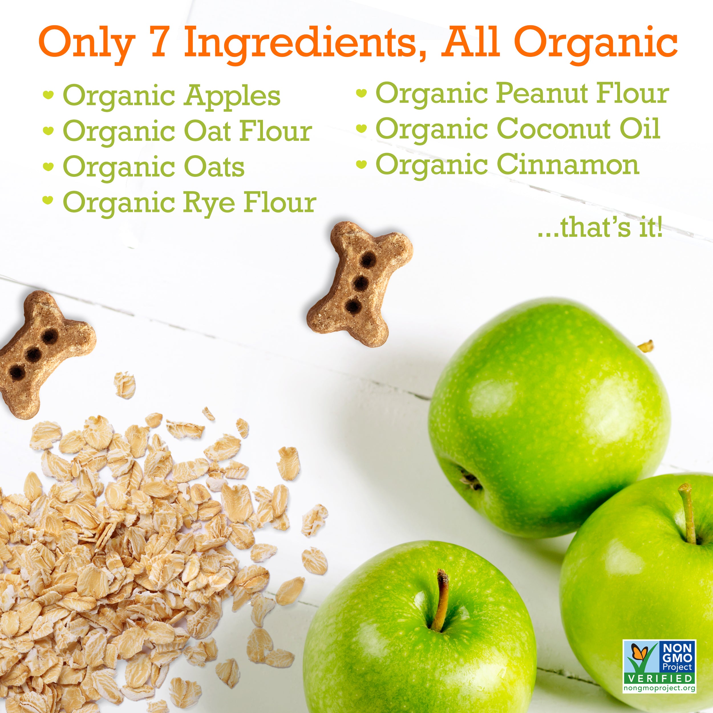 Ingredients: Organic Apples, Organic Oat Flour, Organic Oats, Organic Rye Flour, Organic Peanut Flour, Organic Coconut Oil, Organic Cinnamon