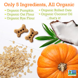 • Organic Pumpkin Treats: Oven-baked with USDA-certified organic ingredients for a clean, naturally delicious training treat.