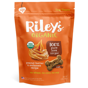 Riley's Organic Dog Biscuits are made with limited ingredients, are USDA Certified Organic, Non-GMO, Vegan, and Made in the USA. They are wheat, corn, and soy free.