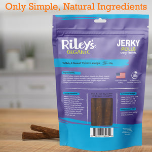 Riley’s Turkey & Sweet Potato Jerky Rolls are a wholesome, chewy treat made with real turkey jerky and fiber-rich sweet potato for clean, natural nutrition dogs love.