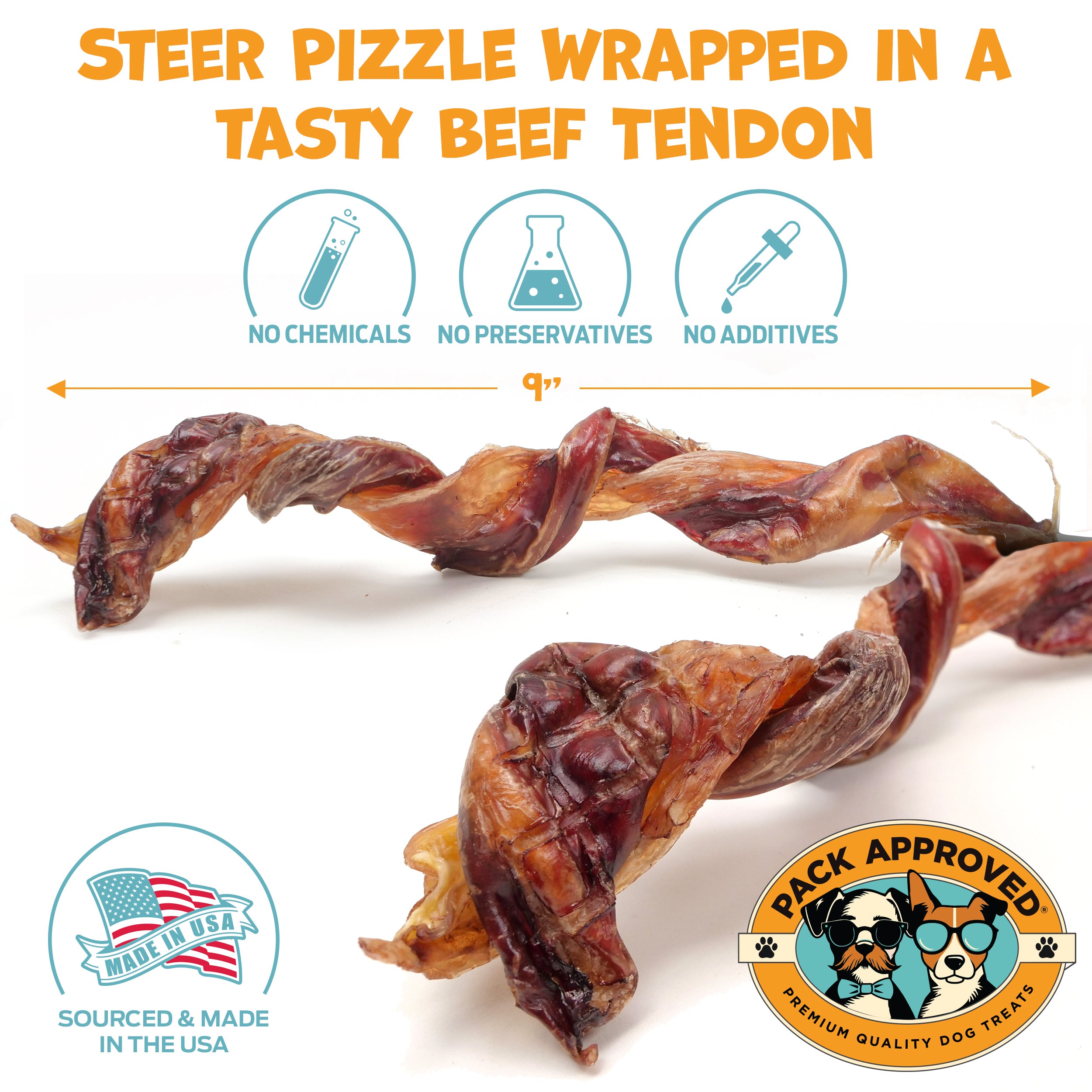 Simple, Clean Ingredients – Made from 100% beef (pizzle and tendon) with no fillers, preservatives, or artificial ingredients.